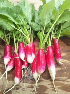 江藤農園にはいろいろな野菜がありますが、よく見る丸い赤のラデッシュと細長いラデッシュを区別する呼び方があります。