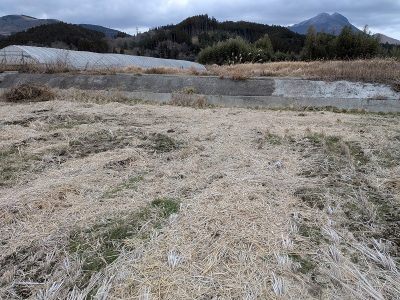 去年ひえの種がたくさんできたところは、次に作るときにひえができないように田んぼの藁を焼きます。燃やしたところに籾が残っているとポップコーンみたいなポップライスがたくさんできます。最近空気が乾燥していて山火事が頻発しているので、200リッターのタンクに水を汲んで、延焼しないように周りを焼いて、風下から自分が面倒見れるくらいの面積で少しずつ焼いていきます。農家が枯草などを燃やすときは近所の人にビックリして消防車を呼ばれないようあらかじめ消防署に連絡してから燃やします。夕方燃やすとどこに火があるかわかりやすいけど、夜露でよく燃えないので、昼間に燃やします。「延焼したらどうしよう・・・。」「消防車が来たらどうしよう・・・。」「ほとけのざはこっちのが大きかったのか・・・。」って思いながら燃やすのでドッと疲れます。ポップライスを食べに来たカラスの大軍をバックに今年は絶対ひえをつくらないぞ!と由布岳に誓った冬の寒い日の事でした。