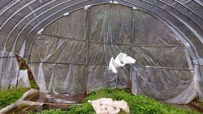 今年は2日から大雪で思うように収穫ができず、シール張り担当の子供は部活で手伝えず、発送担当のアルバイトさんは高齢のため2人とも体調が悪いと今年は不参加で、てんてこ舞いでした!4日の夕方までに注文があった分は無事に発送を終え、あとは直売所の分を作るだけです。パックにちょうどの大きさに大根はできるか?鹿にはこべらを食べられないか?小川のセリの上をカモが踏みたくらないか?などなど毎年ヒヤヒヤしますが無事に終わったあとのアイスは最高です!